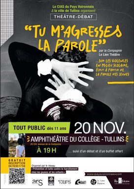 Par la Compagnie Le Lien Théâtre, dès 11 ans 20 novembre 19h, amphithéâtre du collège. Un spectacle sur les violences en milieu scolaire, écrit à partir de la parole des jeunes.